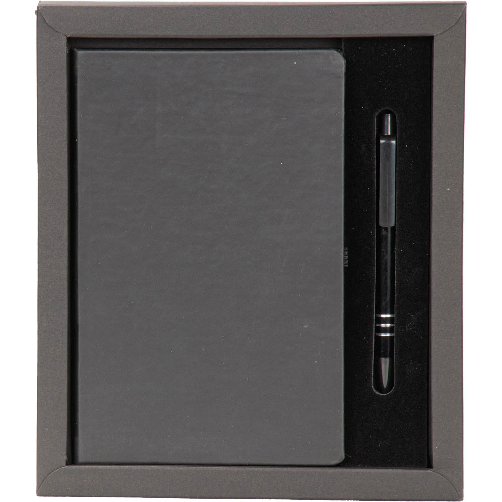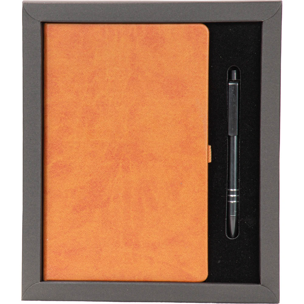 Açıklama: * Termo Deri Defter 13 x 21 cm (Eskihisar) * Metal Kalem Tükenmez (0555-30) * Kutu: Karton