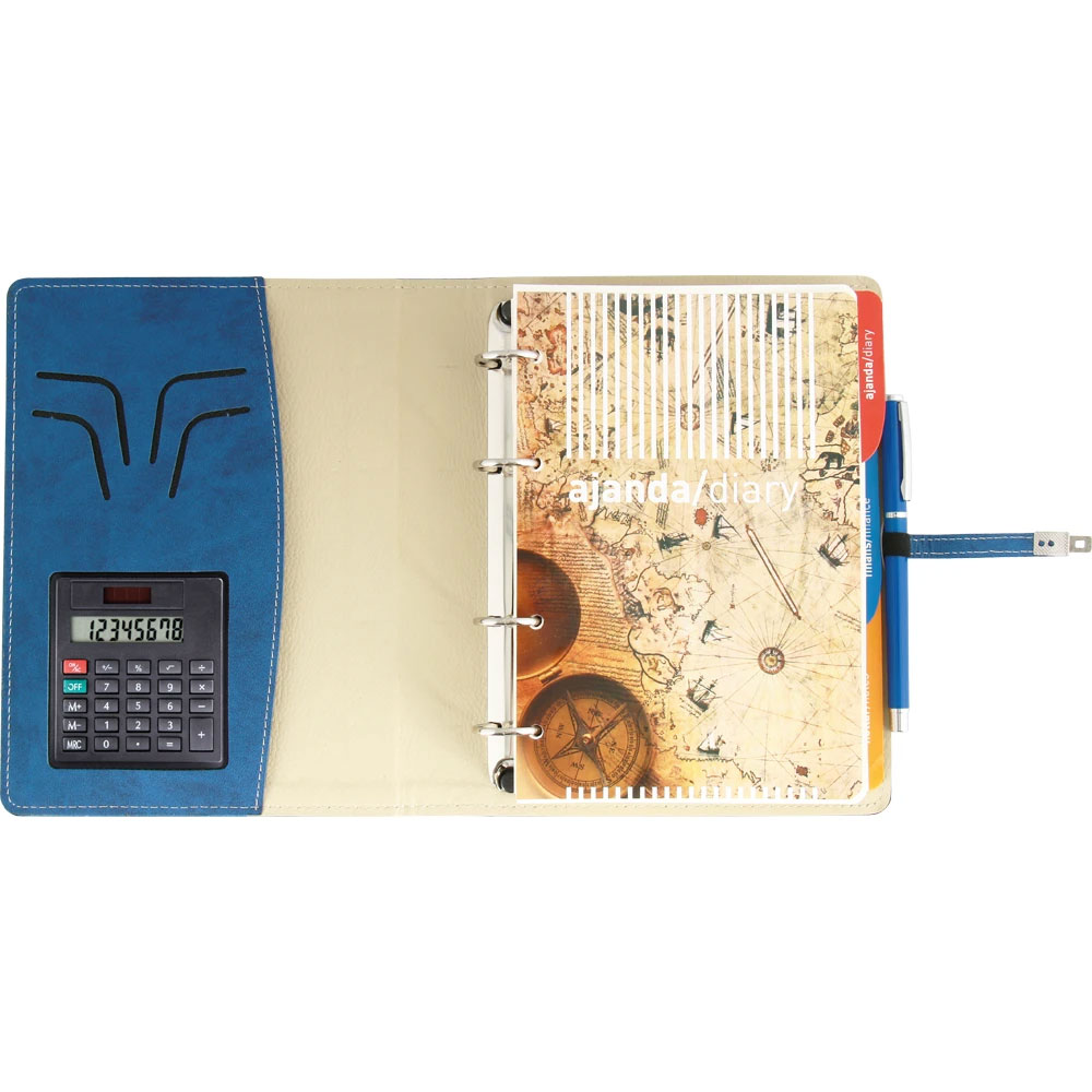 Açıklama: * Deri: Termo * Metal Toka: Var * Hesap Makinası: Var * Ebat: 18 x 23 cm * Baskı: Gofre, Lazer * Koli Adeti: 30 * Ajanda Ebat: 15 x 21 cm * Sayfa Sayısı: 352, Çizgili * Kağıt: 70 gram krem